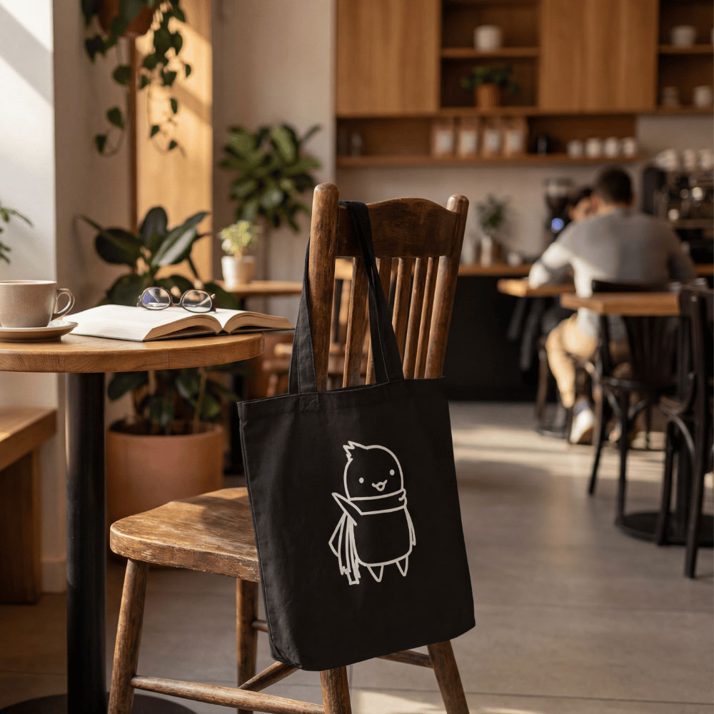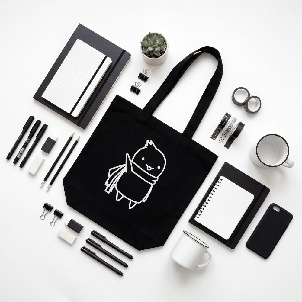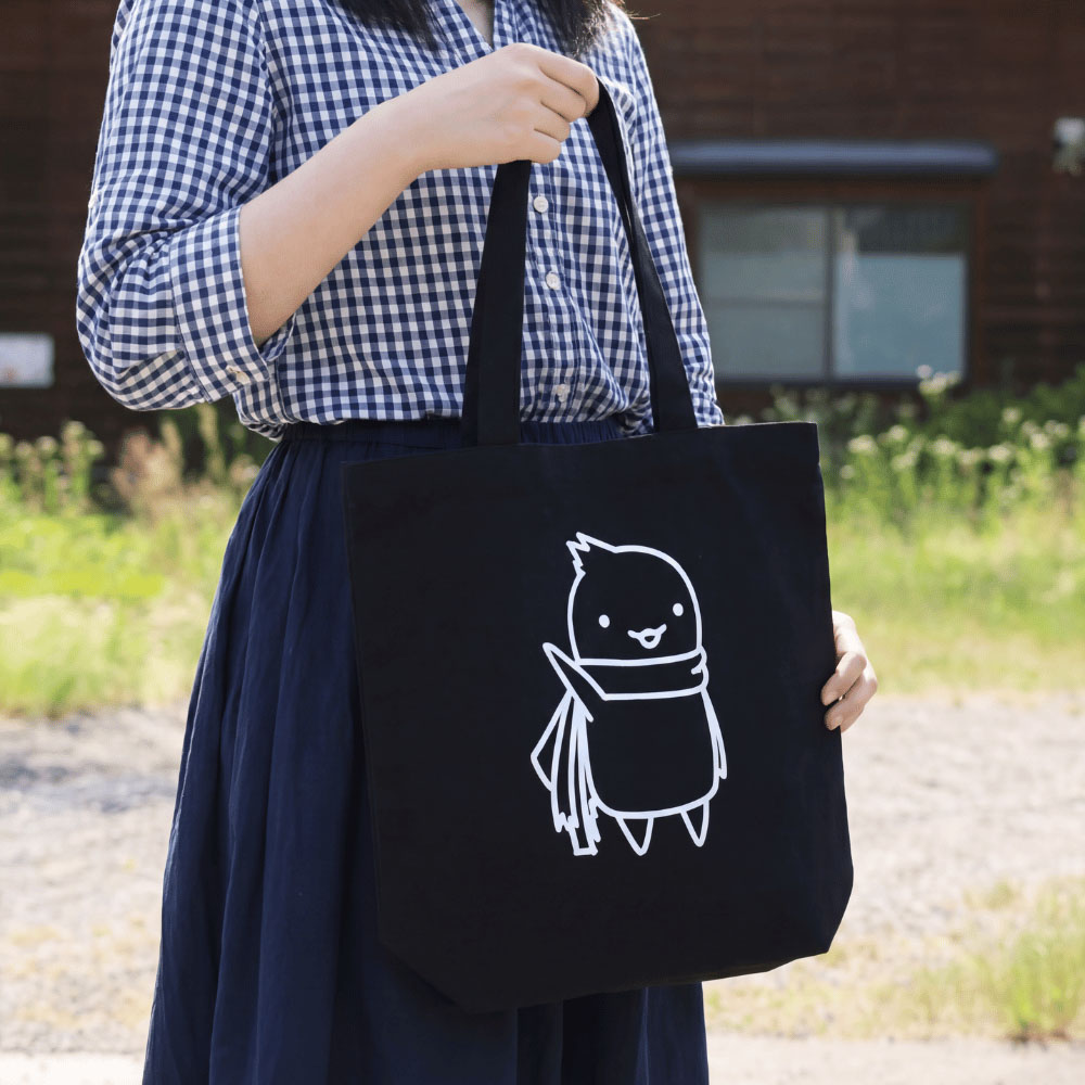 シンプルで可愛い白抜きキャラクター「やっぷー」がワンポイントの、使いやすい黒トートバッグです。モノトーンデザインでどんなコーディネートにも合わせやすく、毎日持ち歩きたくなる愛らしさ。通勤・通学・お買い物・お出かけなど、様々なシーンで活躍します。
