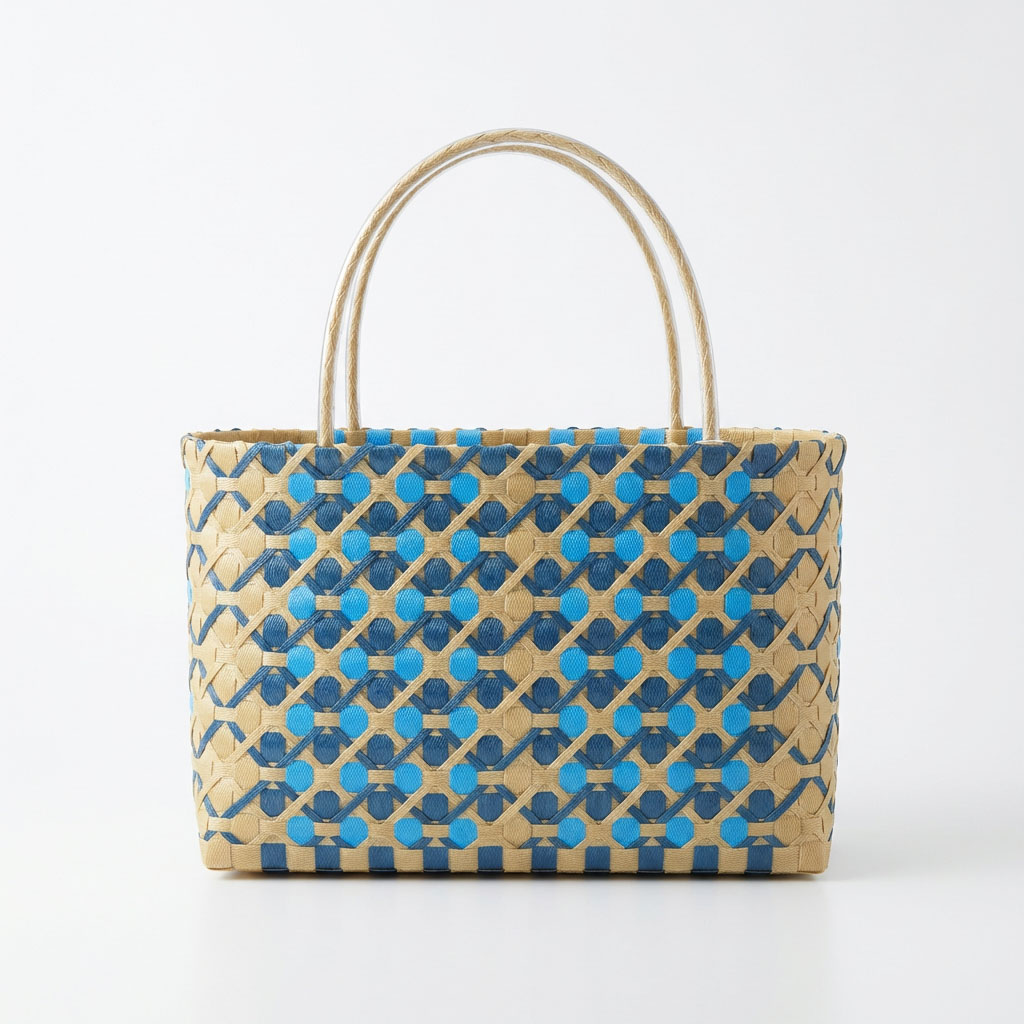 PPバンドのプラカゴ バッグ 青色 花柄 縦型 ハンドメイド -KOMUTEN こむてん-